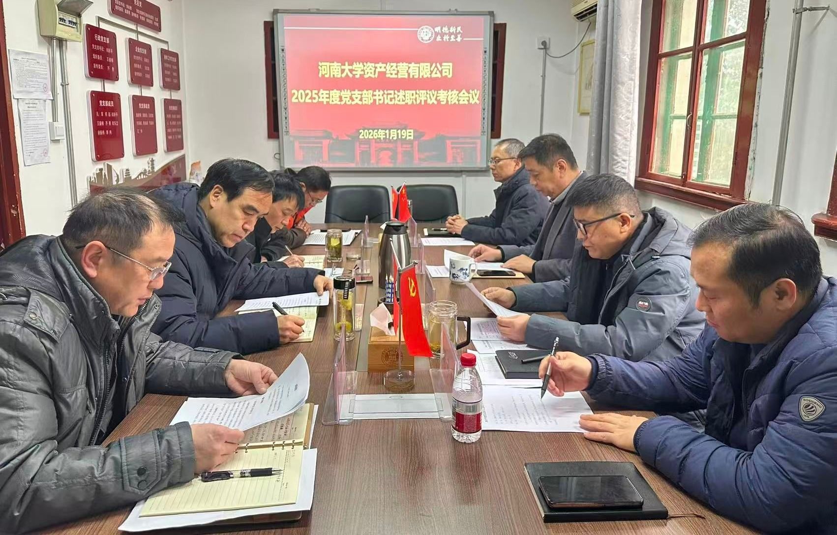 1月19日上午,河南大学资产经营有限公司党总支在205会议室召开2025年度党支部书记述职评议考核会议,领导班子成员、党总支委员及各支部书记参加会议。