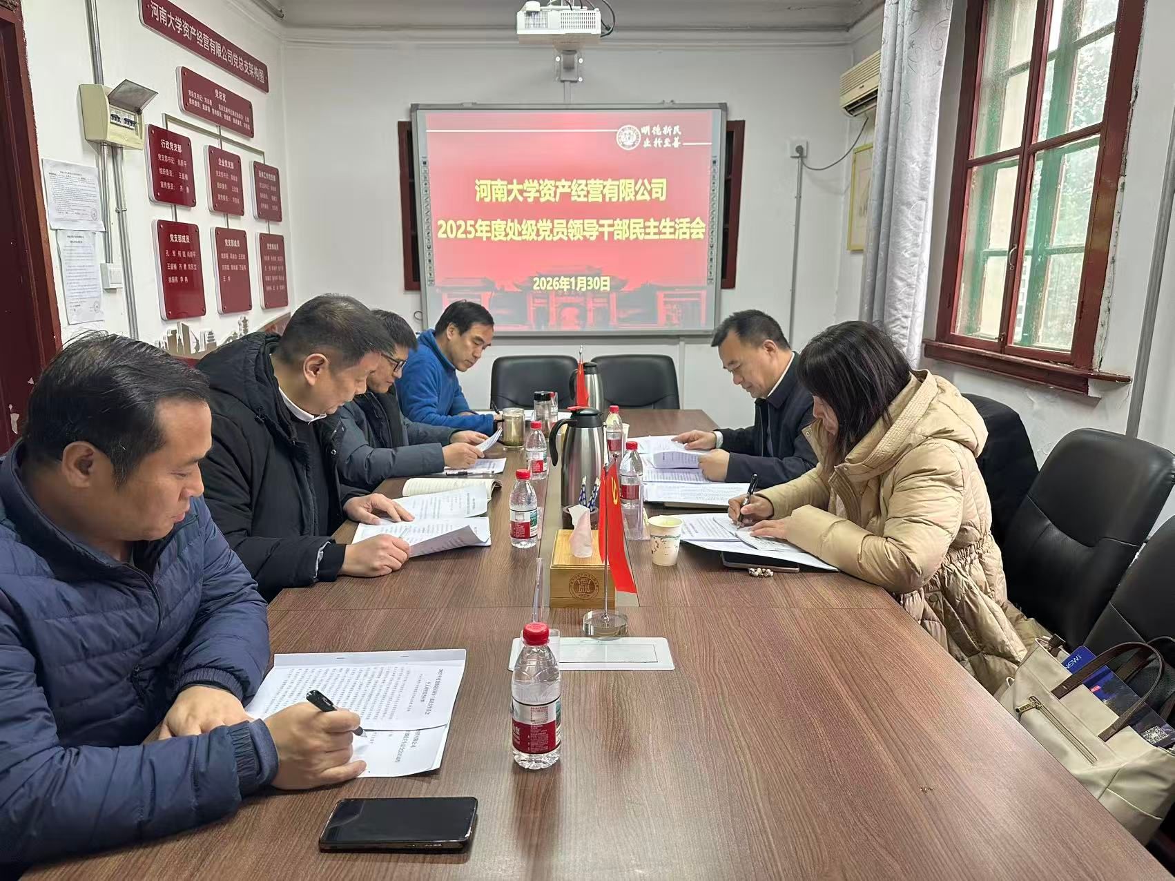 1月30日下午,河南大学资产经营有限公司召开2025年度处级党员领导干部民主生活会。校督导组王子梁和晁卫华到会指导,公司班子成员、党总支委员参加会议。会议由党总支书记、总经理刘志勇主持。